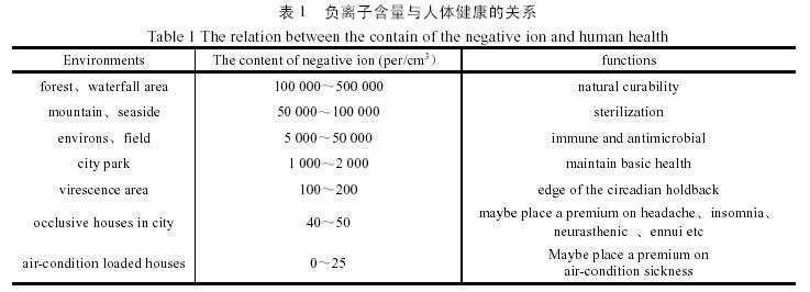 根据《国际医学》杂志报道:负离子含量与人体健康的关系如下表1。
