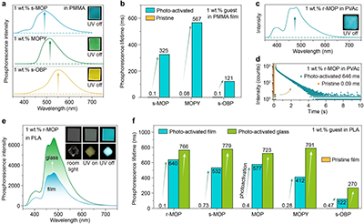 有机超长室温磷光材料因其长寿命的三重态激子、大斯托克斯位移、丰富的激发态等独特优势,引起了广泛关注。近年来,开发对外部刺激(如,激发波长、紫外光照射、温度、湿度、机械力等)具有响应性的有机超长室温磷光材料已成为一个热点课题。部分有机小分子化合物通过紫外光、热或机械力刺激调控分子排列与分子间相互作用;或将有机染料掺杂到聚合物基质中,利用紫外辐照除氧及光交联策略,实现动态磷光行为。然而,这些刺激响应室温磷光材料的光激活时间和光激活磷光寿命高度依赖于材料的内在属性,通常是恒定不变的,因此,调控光激活磷光寿命和光激活时间仍然是一个巨大的挑战。