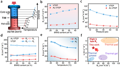 随着5G技术及先进高功率电子设备的快速发展,对具备优异热传导性能的热界面材料(TIMs)的需求日益迫切,以实现高效散热与可靠的热管理。然而,现有热界面材料在追求高热导率的同时难以兼顾优良的粘弹性,二者之间存在固有矛盾,导致其在实际应用中的界面热传递效率仍不理想。