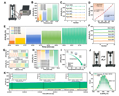 3 PCA改性淀粉/PAM水凝胶拉伸、压缩下的电学性能及循环稳定性表现