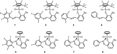 近日,中国科学院长春应用化学研究所王保力研究员团队报道了一系列半夹心型钛配合物的合成,并将其用于制备超高分子量聚乙烯,所得聚乙烯同时具有超高分子量(316万至715万)、窄分布(Mw/Mn < 2.6)、低支化(<0.5/1000 C)和解缠结的特点(图1)。催化剂配体的双平面及氟原子(图1和图2)在控制聚乙烯的分子量和解缠结度方面发挥着重要作用。冷压成型和差示扫描量热(DSC)退火实验证明了分子链的解缠结状态。作者利用电子顺磁共振(EPR)和原位 1 H NMR 实验提出了合理的活性种及反应机理。