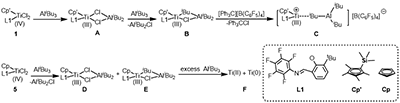 为了研究聚合活性种的结构,作者进行了原位核磁 1 H NMR和电子顺磁共振(EPR)实验,并提出了反应机理(图5)。催化剂1中加入AliBu3后,形成了稳定的Ti(III)-Al双金属物种,对烷基铝具有较高的耐受性;而催化剂5随着烷基铝用量的增加,Ti(III)会被继续还原为+2价或0价物种,进而导致失活,表现出较差的铝耐受性。