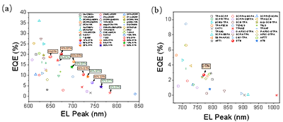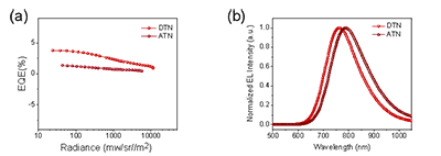 5:非掺杂NIR-OLED性能。非掺杂DTN器件在770 nmEQE2.9%,处于非掺杂近红外TADF-OLED的领先水平。