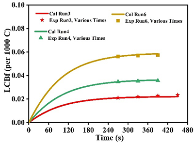 参数灵敏度分析表明,大单体再插入速率常数 kb 对长支链含量影响最为显著。当 kb 增加3倍时,长支链频率最高提高约 180%;而当 kb 降低3倍时,则降低约 66%,表明大单体再插入过程在长支链形成中起主导作用。参数相关性分析进一步发现,二烯单体插入速率与大单体再插入速率之间存在一定耦合关系。在此基础上,研究团队提出了简化动力学模型,仅跟踪二烯单体的一次插入和二次插入反应,从而在无需建立完整分子量分布模型的情况下预测长支链含量。结果表明,该模型对长支链含量的预测误差仅为 3%–10%,在保持较高预测精度的同时显著降低了模型复杂度,为聚烯烃反应过程模拟及工业放大提供了理论基础。