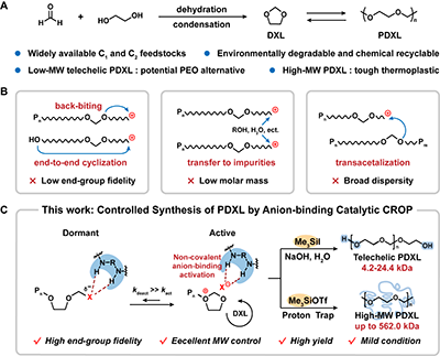 图1. 阴离子结合催化实现聚(1,3-二氧戊环)的可控合成。