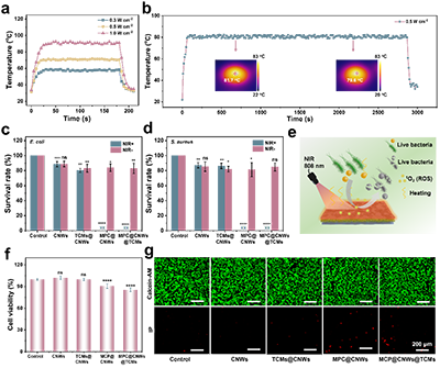 图5. 纤维素基Janus智能织物的光热抗菌性能与细胞毒性