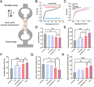 图4. 热疗水凝胶治疗平台对于IVD生物力学功能的维持作用。