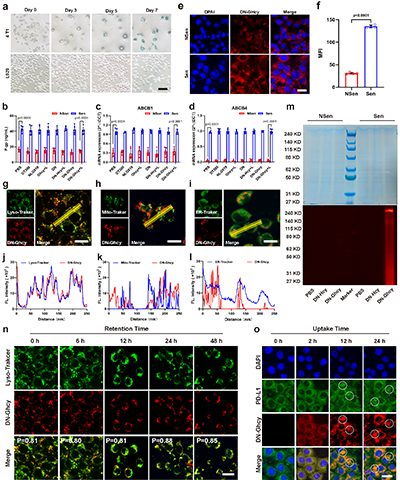 图3. DN-Ghcy通过化学锚定在衰老肿瘤细胞高效富集。