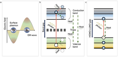 1. 光热机制示意图:(a)LSPR效应(b)非辐射弛豫(c)激发的π电子的弛豫