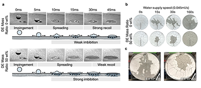 为了解决上述问题,研究团队从自然界中获得灵感。如图2所示,大象皮肤表面具有复杂且高度互连的裂纹网络结构,这些裂纹不仅能够快速捕获水分,还可以通过毛细作用引导水在表面横向甚至在倾斜表面上扩散,从而延长水分停留时间并增强蒸发散热能力。受此启发,研究团队提出将“裂纹”从传统意义上的结构缺陷,转变为一种可设计、可调控的功能性输运网络。