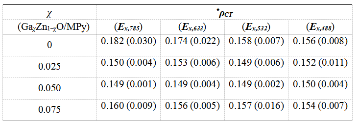 表1 GaχZn1?χO/MPy在785、633、532和488 nm的激发线下的ρCT。