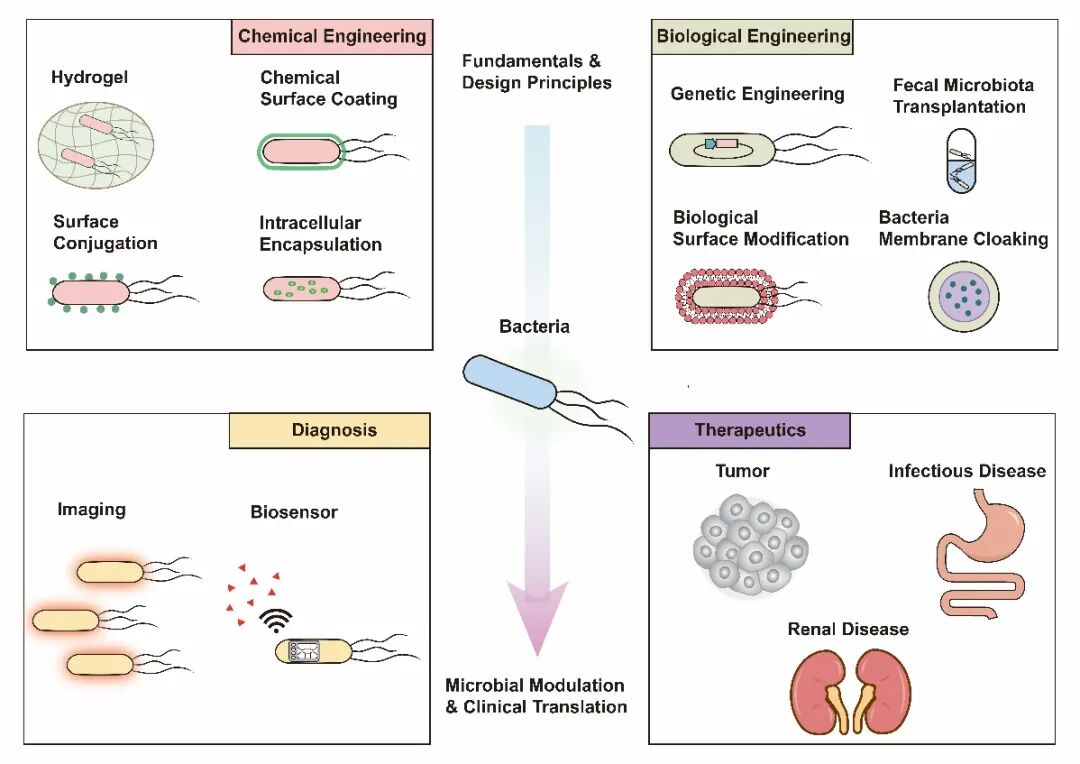 Zhaoting Li et al., Chemically and biologically engineered bacteria-based delivery systems for emerging diagnosis and advanced therapy, Advanced Materials, 2021,