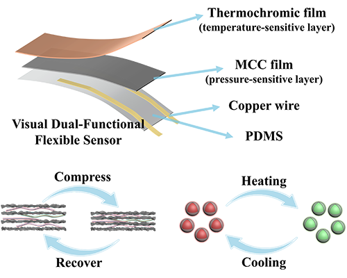 近日,湖南大学化学化工学院刘松教授团队在《Advanced Functional Materials》上发表了一项创新研究,他们开发出一种基于MXene和热致变色材料的双功能柔性传感器,能够通过电信号和视觉颜色变化同时、无干扰地检测压力与温度。这项技术解决了长期以来困扰多功能传感器的信号耦合问题,为实时、精准的健康监测提供了全新解决方案。