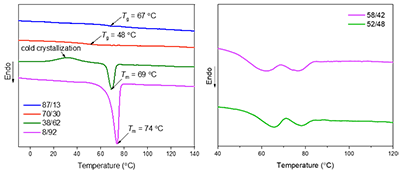 图4. 通含有不同比例聚羟基脂肪酸二氧化碳材料的热性能曲线