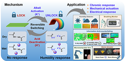 智能材料正以前所未有的方式改变我们与环境的互动方式——从智能纺织品到仿生机器人,材料的多功能集成已成为该领域的关键前沿。其中,将强健的机械驱动与高保真的视觉输出相结合,尤为引人关注。可见光光学响应能力,使得材料能够将不可见的湿度、温度或应力信号,直接转化为肉眼可辨的颜色变化,极大推动了人机交互与实时传感的发展。而湿度,作为一种普遍存在、绿色且生物友好的环境刺激源,正成为新一代可穿戴设备与软体机器人的理想驱动方式。