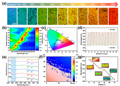 图2. K-BPLC薄膜在不同湿度下的结构色变化