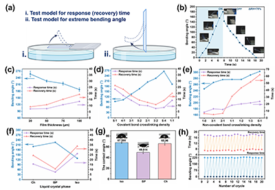图3. K-BPLC薄膜的湿度驱动性能与网络结构调控