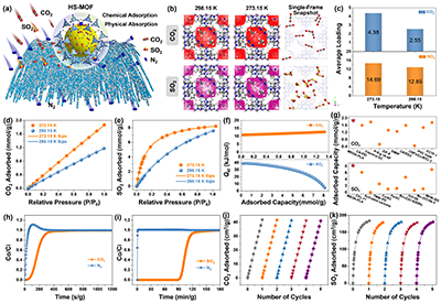得益于精准的多尺度取向纤维调控及晶体铠甲化化负载,本研究实现了纳米纤维膜对有害气体的高效捕获与选择性分离。氨基修饰的MOF晶体均匀负载于纤维表面,使膜对CO2和SO2表现出显著吸附亲和力,SO2吸附能力尤其突出。膜在常温及高温条件下均保持优异选择性分离性能,可有效区分CO2、SO2与N2,实现气体精准截留与清洁释放。多次吸附–解吸循环后仍能保持近乎原始吸附能力,显示出复杂环境下长期高效防护与可重复使用潜力。