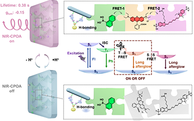 圆偏振有机长余辉(CPOA)材料兼具圆偏振光信息密度大和无视角依赖性的特性,以及长余辉材料较长的发光寿命(可以达到毫秒甚至秒的级别),有效避免激发光源的干扰,并具有较高的激子利用率等特点。目前,大多数报道的圆偏振长余辉材料的研究主要集中在可见光范围内,然而具有圆偏振信号的近红外长余辉材料由于其强组织穿透能力、丰富的信息存储能力, 有望在生物医学成像、先进防伪等领域得到应用。如何获得高不对称因子、长余辉寿命、可动态响应的近红外圆偏振长余辉材料是该领域重要的科学问题之一。