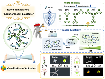图1. 具有磷光与驱动双功能的室温磷光液晶弹性体设计示意图