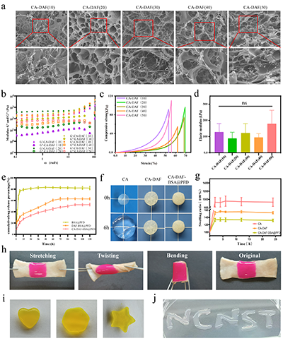 近期,燕山大学环境与化学工程学院张强团队通过模拟皮肤筋膜层的多级次纤维网络结构,制备出基于核壳纳米纤维的复合水凝胶材料(CA-DAF-BSA@PFD),为实现慢性伤口的高质量愈合提供了新思路(图1)。