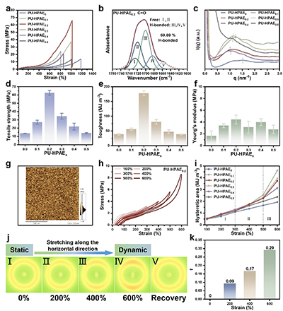 图3. 超支化聚氨酯弹性体(PU-HPAEx)机械性能表征