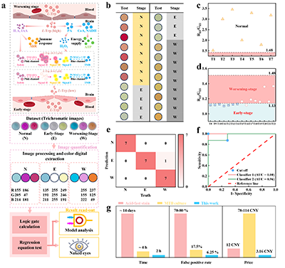 为进一步提升临床适用性,团队将逻辑门运算与颜色信号分析相结合,构建了三级判别体系:通过蓝色信号的G/B比值、粉红色信号的R/G比值及复合颜色的R/G比值,分别设定诊断阈值,实现对健康人群、早期TBM患者与病情恶化患者的精准区分。