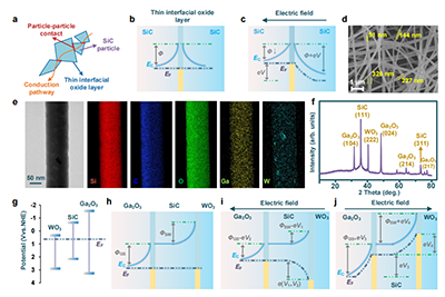 图1 SiC-Ga2O3-WO3纳米纤维理化性能表征及“阶梯式”肖特基势垒模型