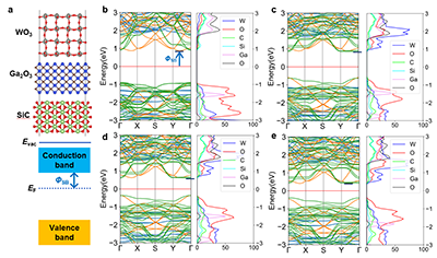 与传统“背对背”双肖特基势垒结构不同,该工作提出了一种“step-by-step”双肖特基势垒结构,可通过材料组成独立且精确的调控两侧势垒高度(图1)。具体而言,选择WO3/Ga2O3与SiC构建阶梯式导带分布,从而影响异质结界面的电荷分布形成内建电场(图2)。通过原子力显微镜对单根纳米纤维进行原位电学测试可以发现,典型的场强调控参数(如阈值电场Ec)与金属氧化物半导体的掺杂浓度直接相关,而非线性系数不仅取决于肖特基势垒高度,还受纳米纤维的微观结构和异质性的影响(图3)。