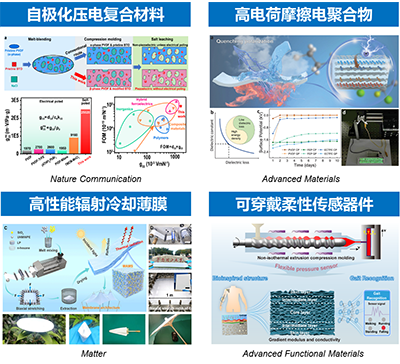 面向新能源与战略性新兴产业中应用的高分子材料及相关器件开展创新性设计与研究工作,例如锂离子电池隔膜、清洁能源转化材料、辐射冷却薄膜与可穿戴柔性传感器等: