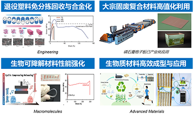 面向国家绿色低碳循环发展经济体系建设,聚焦退役塑料回收处理、大宗固废资源化利用、生物可降解材料高性能化与生物质材料高效成型等关键问题,开展材料的可持续发展与高值化利用技术研究: