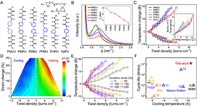 图2. 聚二脲纤维的分子结构设计与扭热制冷性能