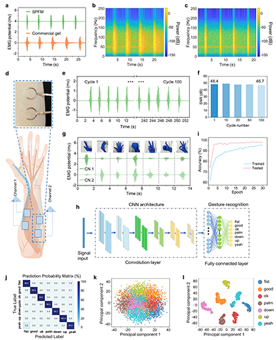 图7. 双通道SPFM电极用于高保真肌电信号记录与手势识别