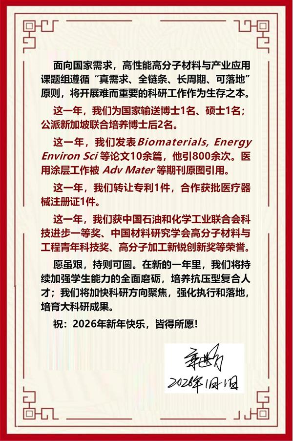 【2026】高性能高分子材料与产业应用课题组2026年新年快乐!