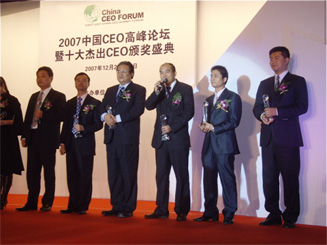 2007年中国企业年度盛宴---2007中国CEO高峰论坛暨十大杰出CEO、最具成长性CEO评选颁奖典礼于2007年12月23日在北京新世纪日航酒店隆重举行。出席会议的有国家统计局总经济师姚景源及国务院国资委研究中心主任王忠明等政府官员、企业领导、专家学者、行业精英、新闻媒体共500多名,公司董事长洪杰作为最具成长性CEO之一应邀出席,会议由中央电视台著名主持人蒋璐阳主持。