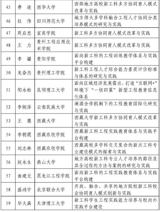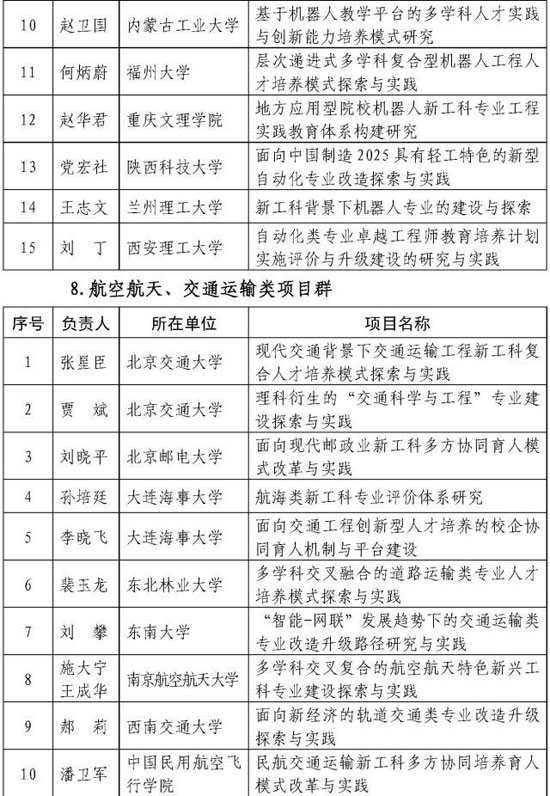 新工科研究与实践项目公示名单