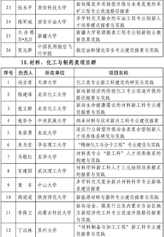 教育部公示612项国家级新工科研究与实践项目 | 包括28项材料、化工及制药类项目群