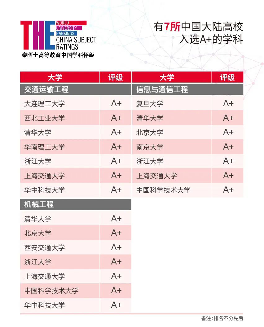 完整名单:https://www.timeshighereducation.com/cn/china-subject-ratings-2020-methodology