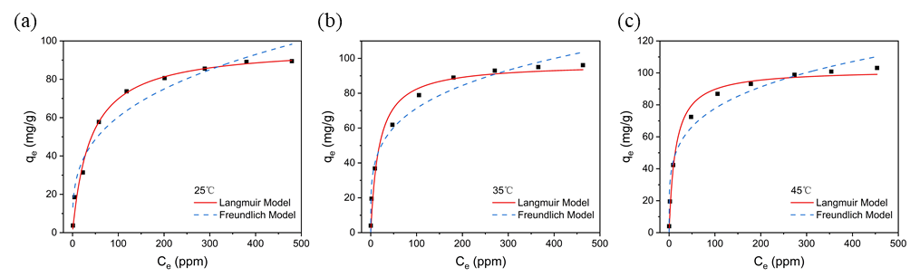 图3. 不同温度下铜离子在GHA上的吸附等温线