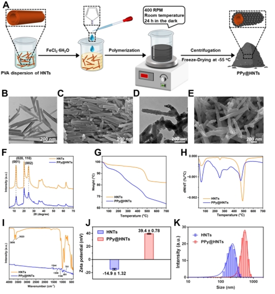 图2. PPy@HNTs的结构表征测试。