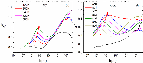 图4.不同温度下与不同位置侧链碳原子的非高斯参数