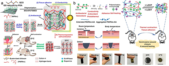 图20 多功能PNIPAm混合水凝胶敷料通过热响应自收缩促进伤口愈合