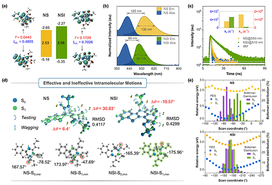 图4 NS与NSI的光物理性质表征以及特征酯基的有效分子内运动