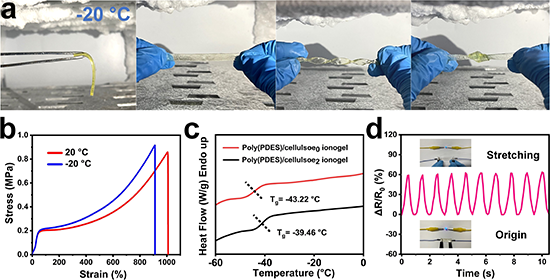纤维素作为自然界中含量最为丰富的生物质资源之一,具有来源广泛、生物相容性好以及可再生可降解的特点。在凝胶领域,以纤维素为基础的功能性凝胶材料越来越受到重视,但纤维素的溶解一直是一大难点且目前大多数纤维素基凝胶的机械性能普遍较差,这为凝胶的制备及应用造成了一定的困难。研发同时具有优异机械性能、导电性能、抗冻性能、自修复性能和黏附性能的纤维素基离子凝胶仍然是一个挑战。