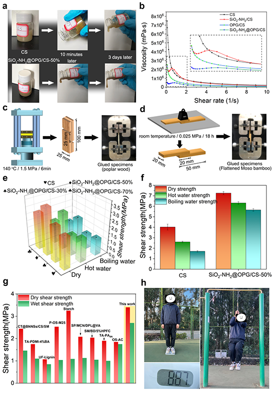 图5 多糖基仿生胶黏剂的木/竹材胶合性能。