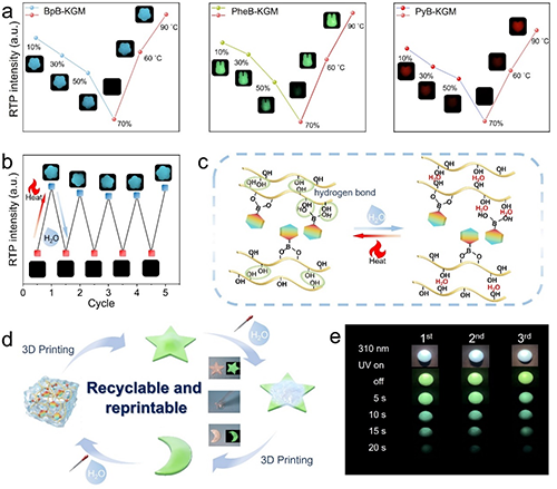 图5 RTP KGM的水/热刺激响应和可循环3D打印