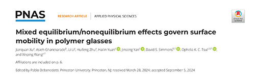 纳米材料表面的分子状态是决定材料表面现象(润湿、摩擦、粘结等)和物理性能(力学、流变、结晶等)的关键因素。研究高分子表面分子的弛豫行为不仅有助于寻找调控纳米材料性能的新方法,还可为揭示玻璃化的本质这一凝聚态物理长期悬而未决的问题提供新的视角和证据。研究发现,玻璃态高分子表面存在一层运动能力增强的“活性层”;随着远离表面,分子运动能力逐渐减弱直至回到本体状态。然而,对于表面增强分子运动能力的传递距离和梯度分布规律的争论,以及实验上高空间分辨率测量表面附近局部分子弛豫时间(或玻璃化转变温度,Tg)的困难,阻碍了该领域的进一步发展。