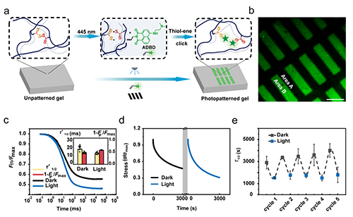 图3 水凝胶的高时空分辨光图案的制备和微小尺度粘弹性表征