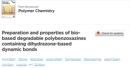 近日,中北大学王智教授课题组针对热固性树脂苯并噁嗪不可降解与化石能源消耗的问题,合成了一种新型的可降解生物基苯并噁嗪,该树脂不仅可以降解,还具有良好的耐热性和阻燃性,在《Polymer Chemistry》期刊发表名为:“Preparation and properties of bio-based degradable polybenzoxazines containing dihydrazone-based dynamic bonds” 的文章。该文章以生物基为原料,成功合成了含刚性共轭的动态二腙键的生物基苯并噁嗪(HDF)。该文章研究了动态二腙键对热性能和阻燃性以及降解性的影响,并成功无损的回收该树脂复合材料中的高价值碳纤维。