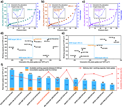 图4. 柔性HCPs的高压甲烷吸附性能与工作容量对比